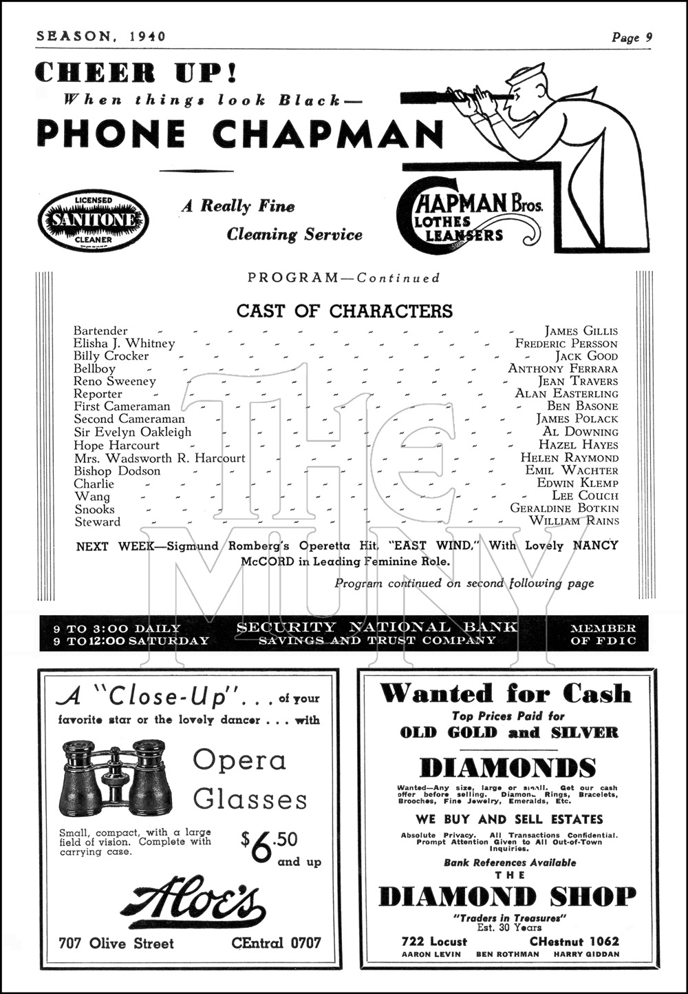 Cole Porter’s shipboard romance, featuring nightclub singer Reno Sweeney, an innocent ingénue, and Public Enemy #13.