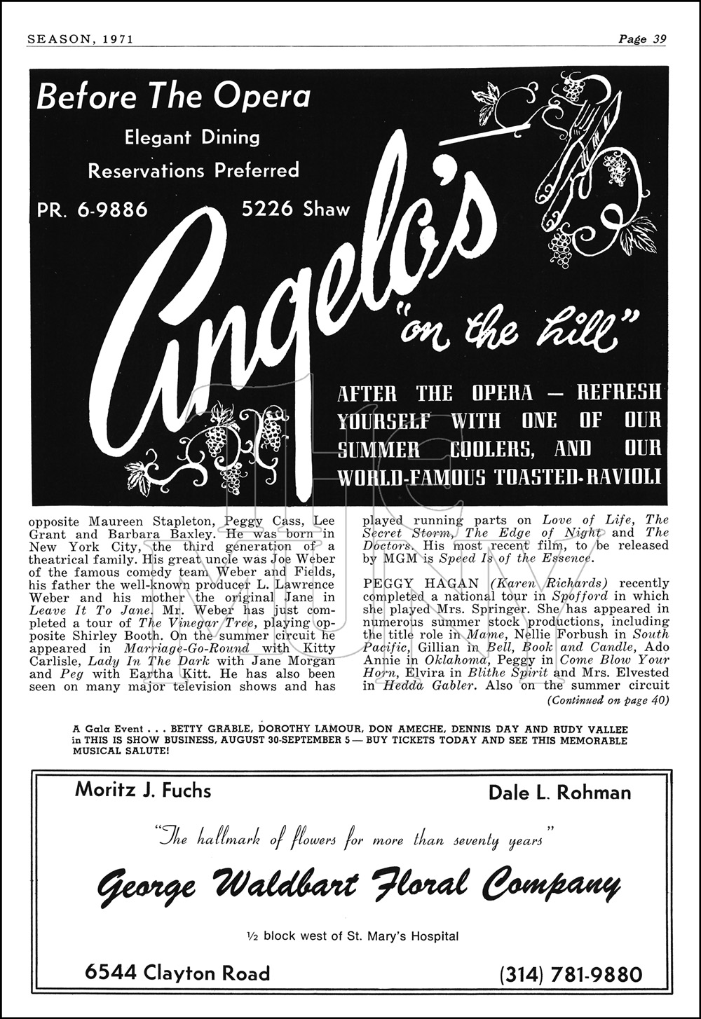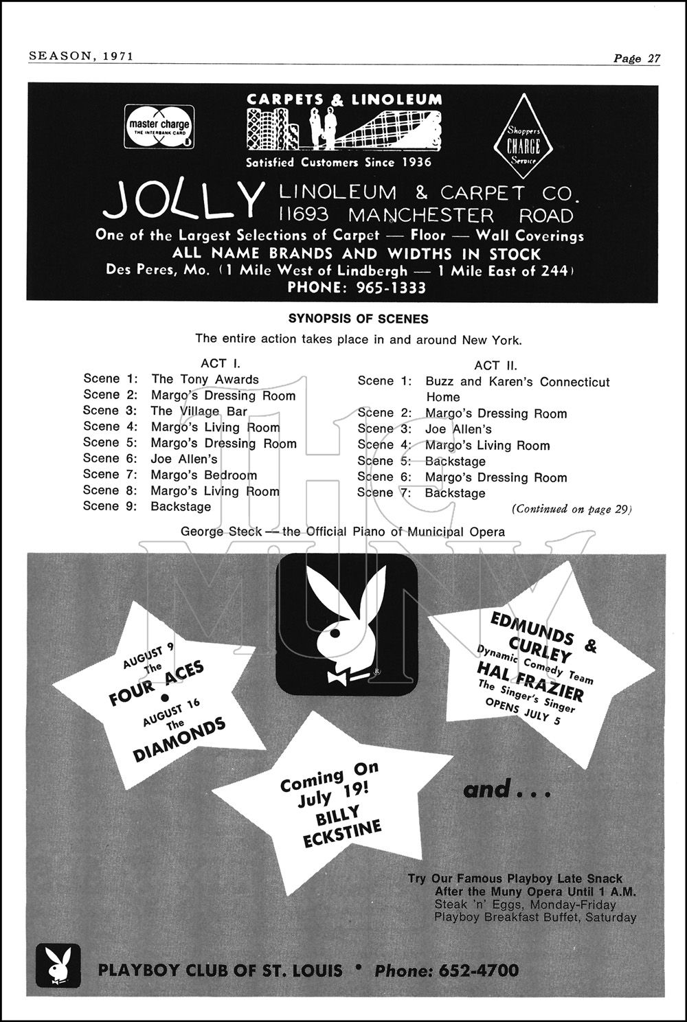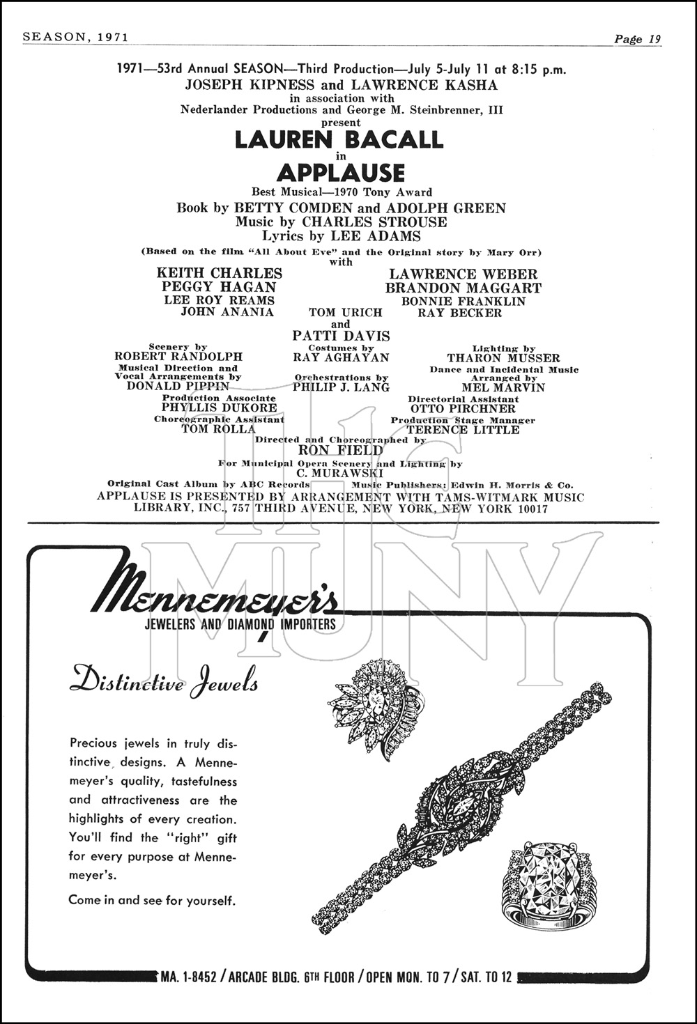 APPLAUSE is the musical version of the film ALL ABOUT EVE, telling the story of an aging Broadway star threatened by the machinations of an up-and-coming starlet.