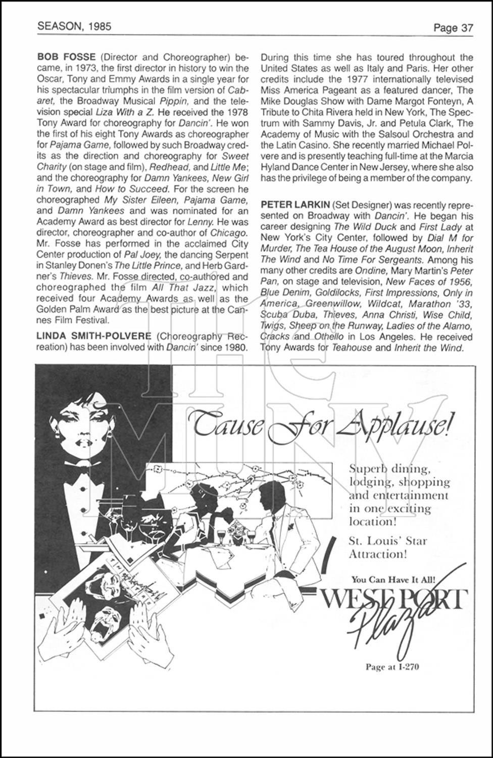 Bob Fosse’s DANCIN’ paid tribute to the music and dance stylings of dancers, ranging from George M. Cohan to Mr. Fosse himself.