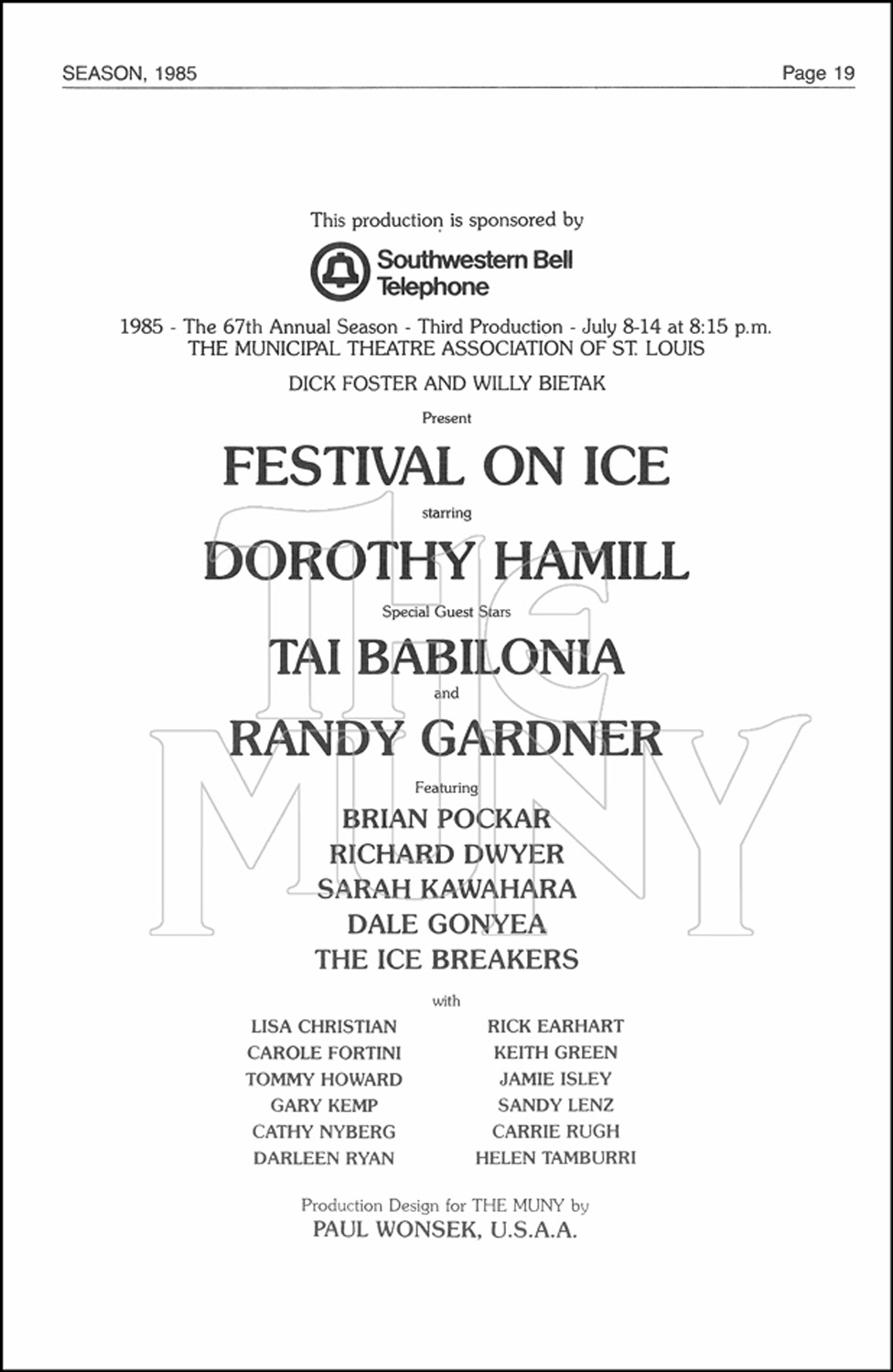 Featuring ice-skating stars Dorothy Hamill, Tai Babilonia and Randy Gardner this show celebrated figure skating with music from Broadway and the classics.