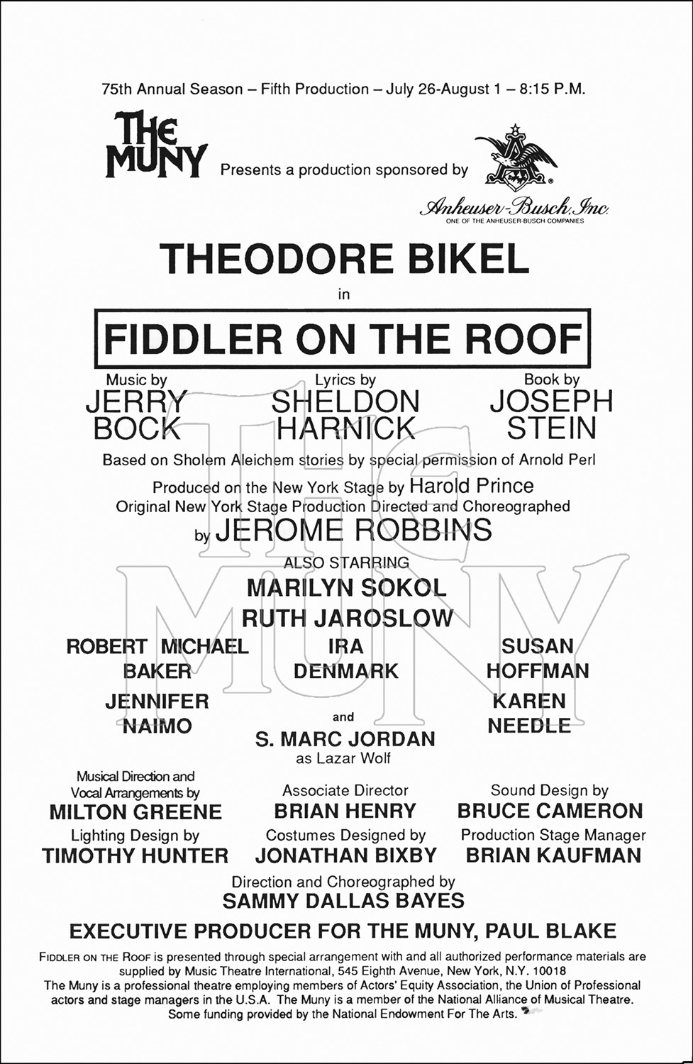 Notes: Based on Sholem Aleichem stories by special permission of Arnold Perl