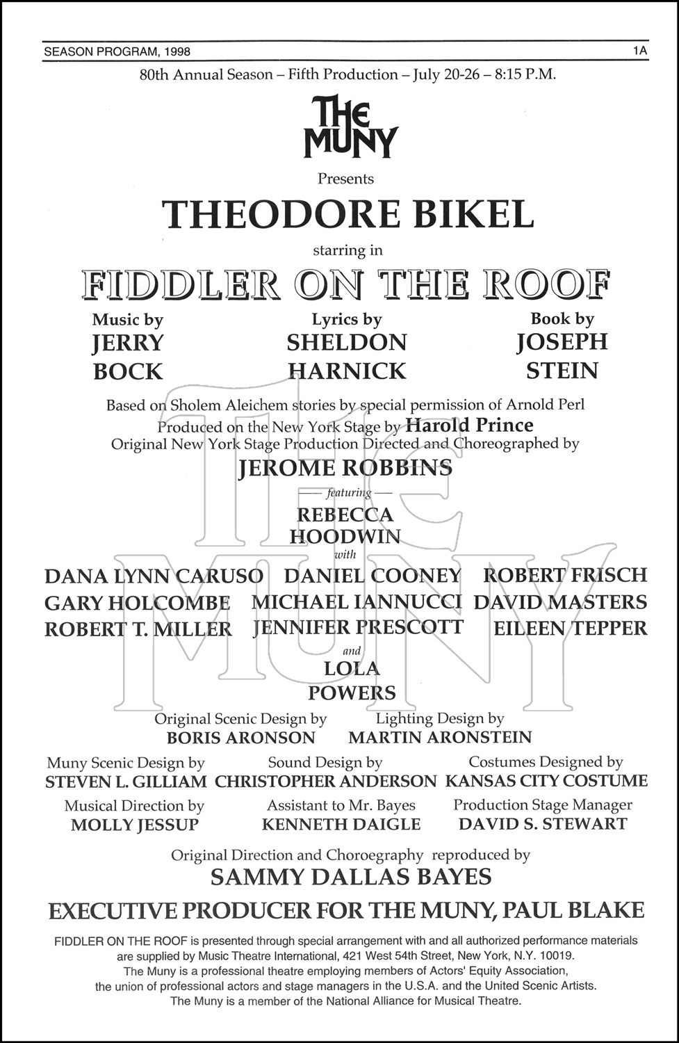 Notes: Based on Sholem Aleichem stories by special permission of Arnold Perl