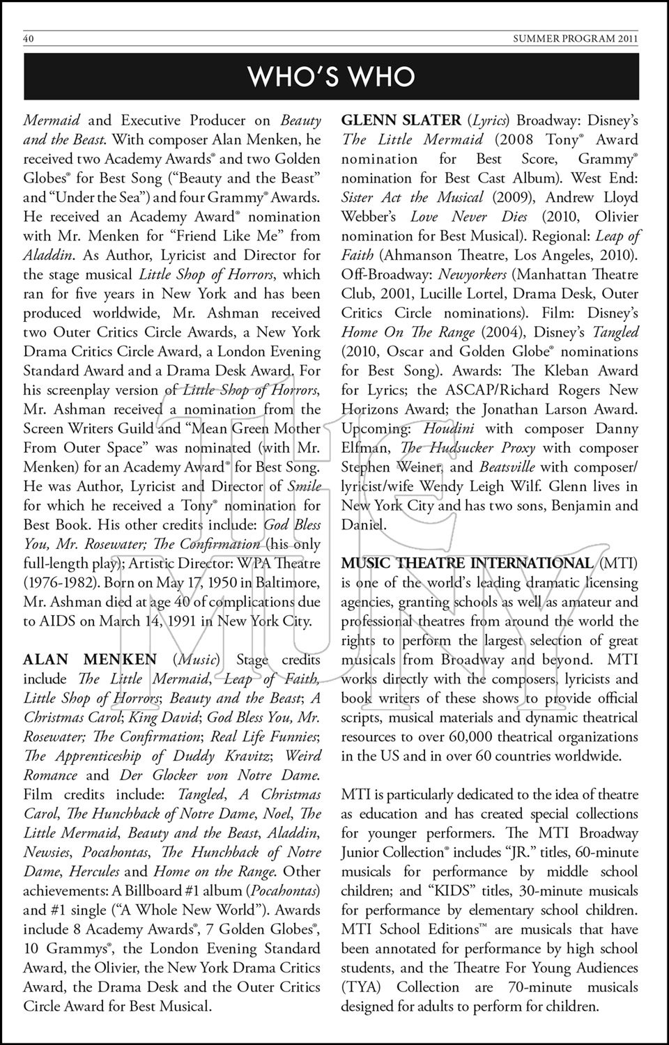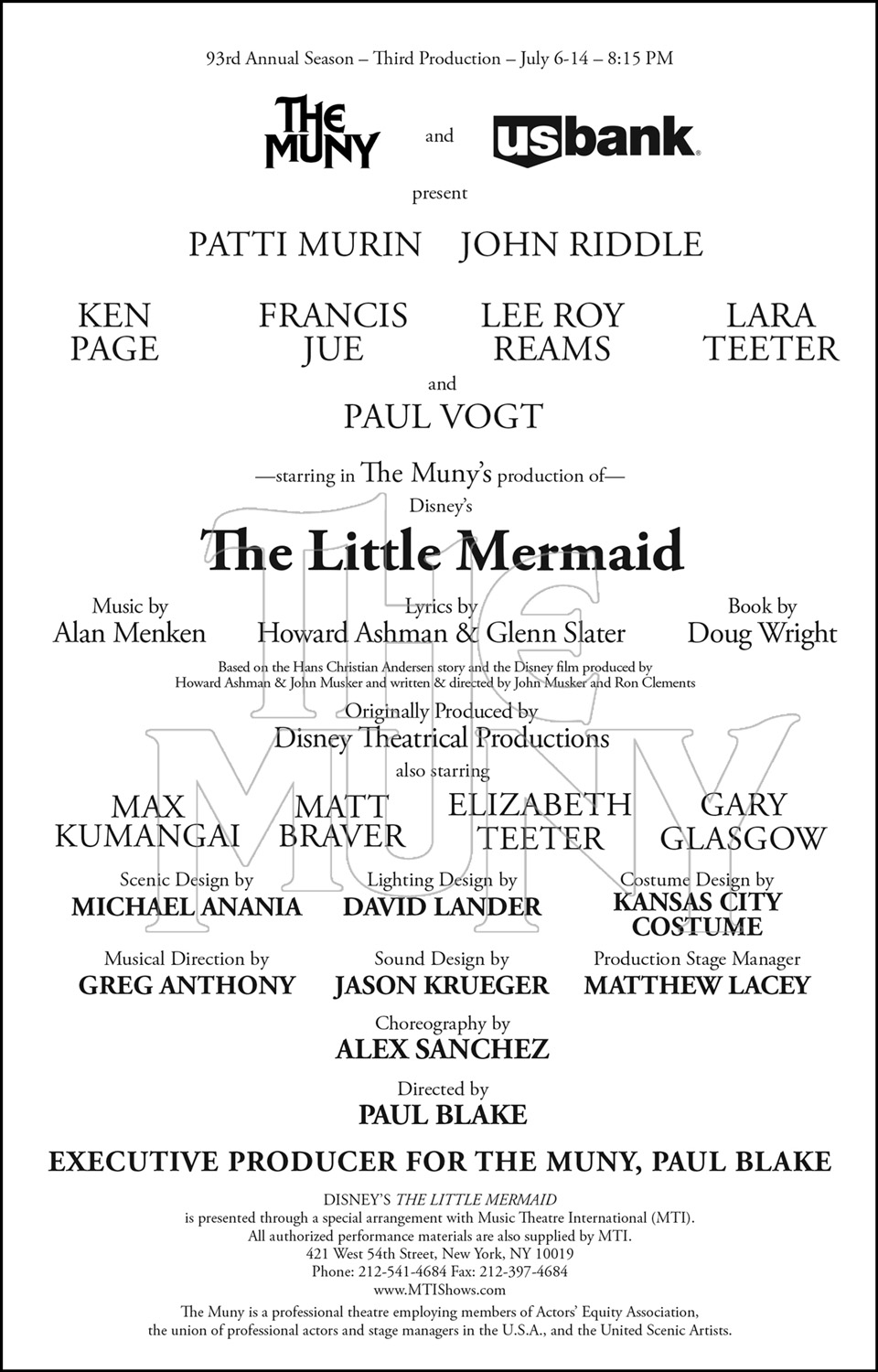 Notes: Based on the Hans Christian Andersen story and the Disney film produced by Howard Ashman and John Musker and written and directed by John Musker and Ron Clements