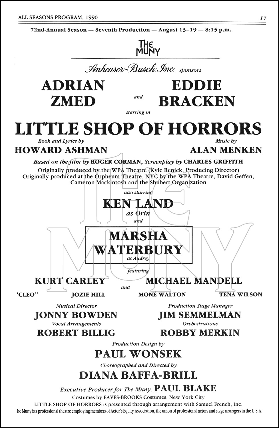 Notes: Based on film by Roger Corman, screenplay by Charles Griffith