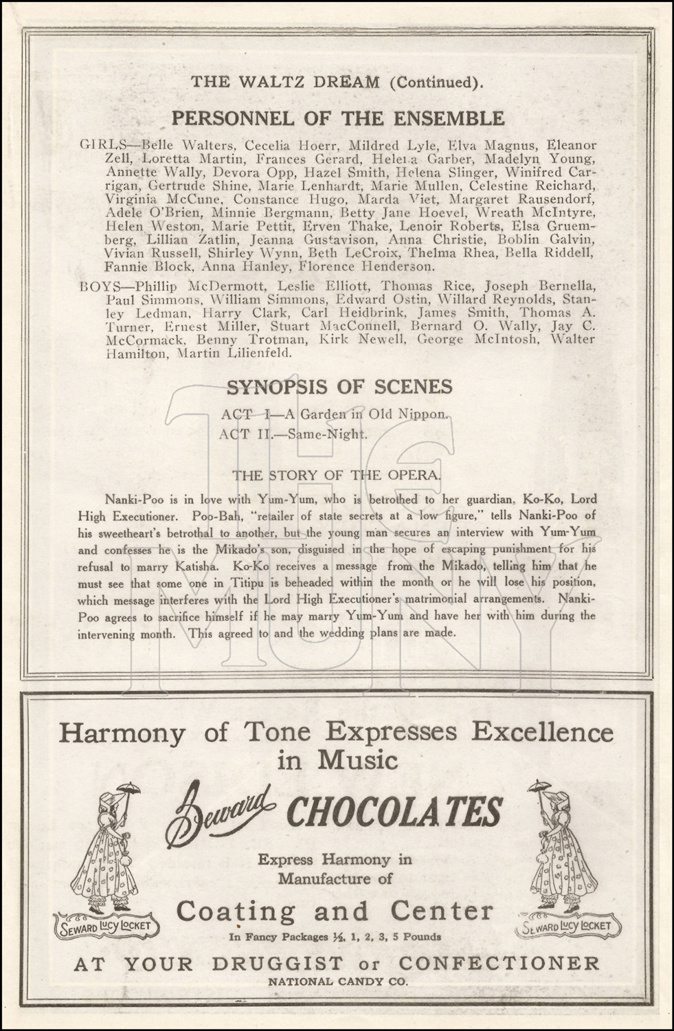 The son of the Mikado of Japan disguises himself as a wandering minstrel in order to woo Yum-Yum, who is scheduled to marry the Lord High Executioner.