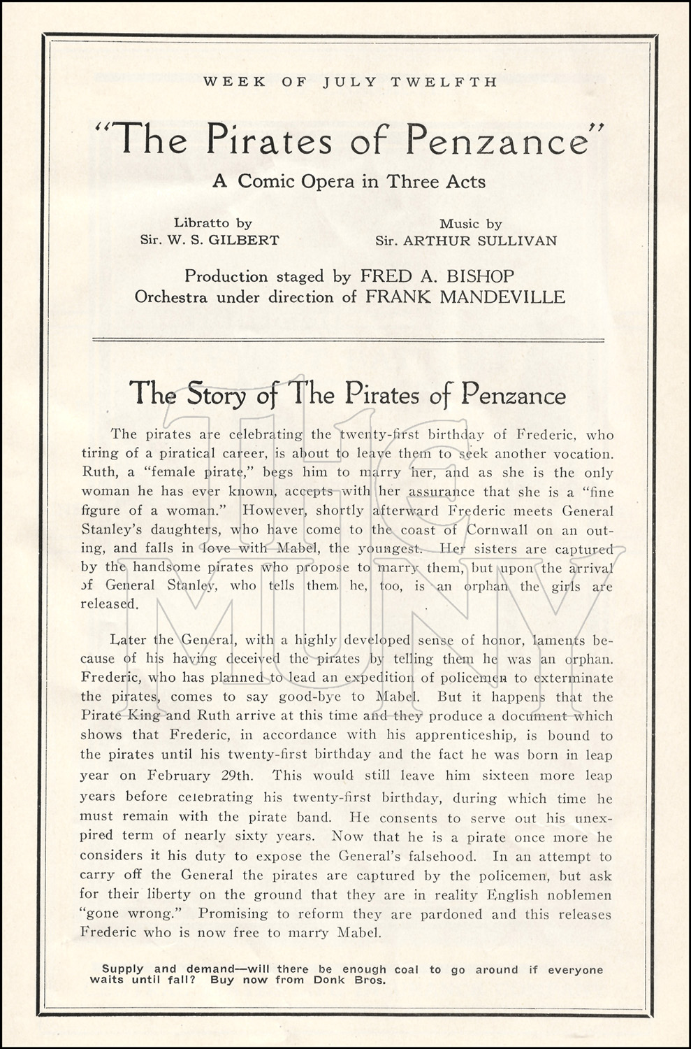 Young Fredrick, raised by pirates, falls in love with the gently-bred Mabel. Helped and hindered by a bumbling band of pirates, Fredrick overcomes all obstacles to his romance.