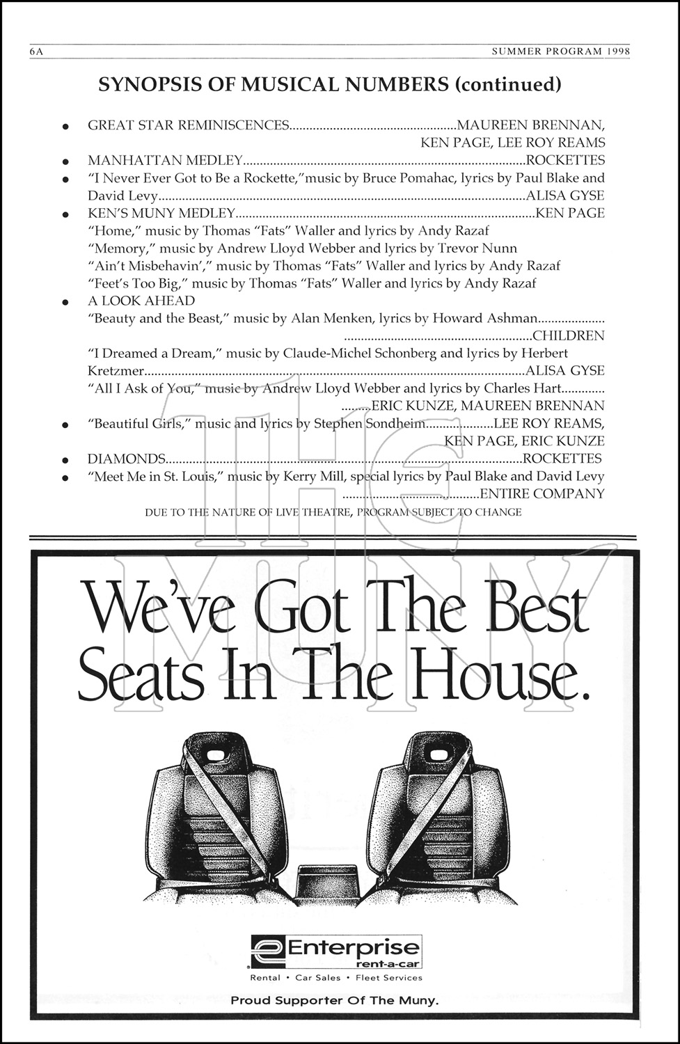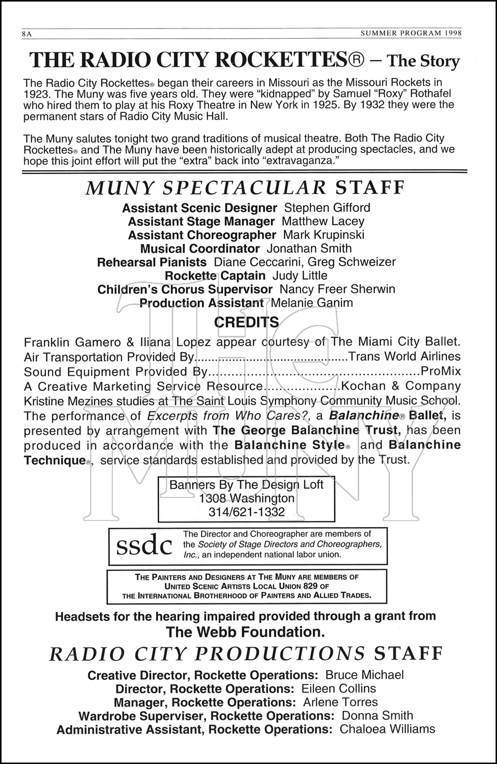 A musical pastiche featuring the famed Radio City Rockettes and a cast of Muny favorites.