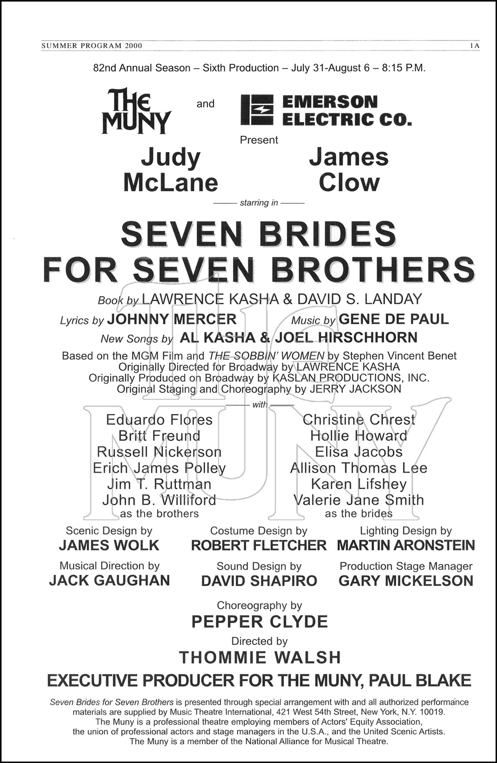 Notes: New Songsby Al Kasha and Joel Hirschhorn. Based on the MGM Film The Sobbin' Women by Stephen Vincent Benet