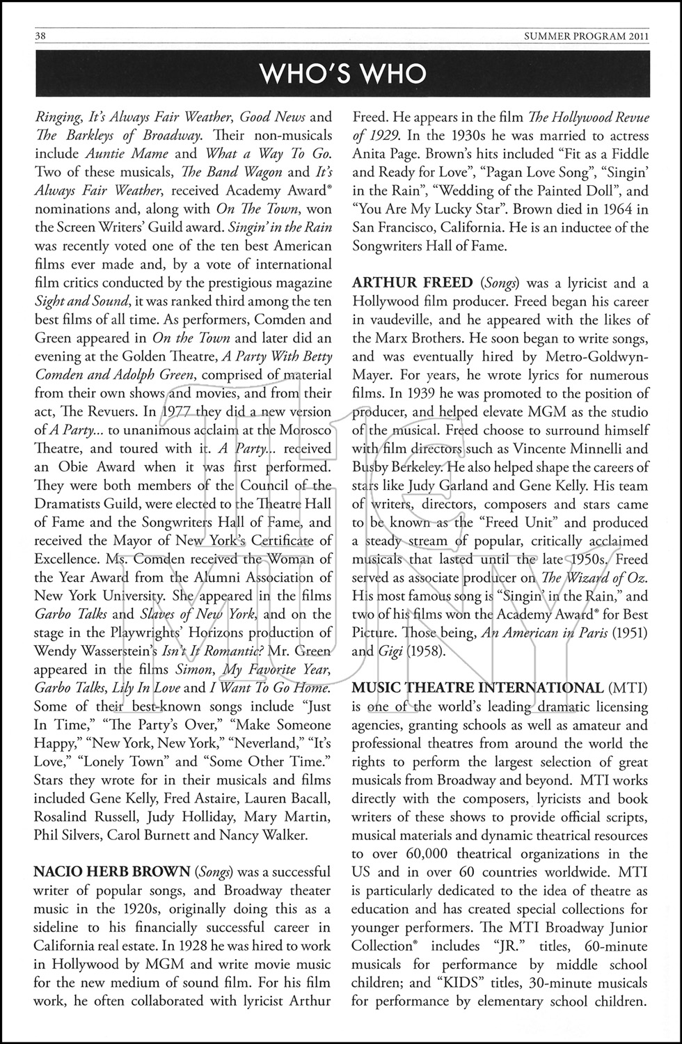 Music: Nacio Herb Brown and Arthur Freed