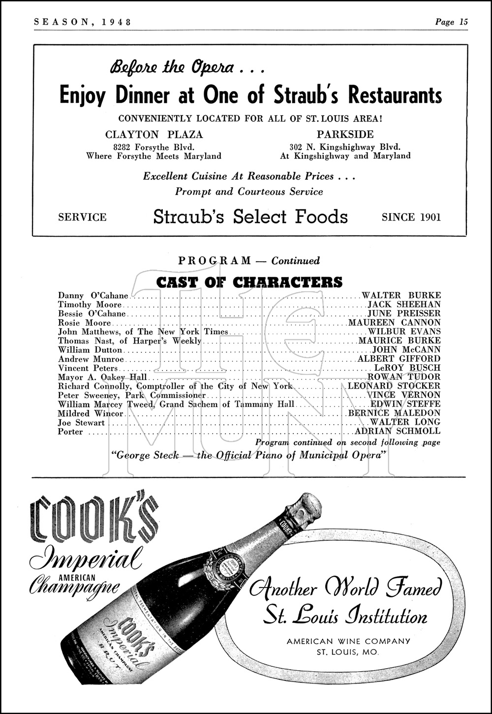 A newspaper reporter in Boss Tweed’s New York is assigned to investigate political frauds, one in particular which involves Central Park. He falls in love with one of the ward-healer’s daughters, and though the course of love does not run smoothly, all ends well
